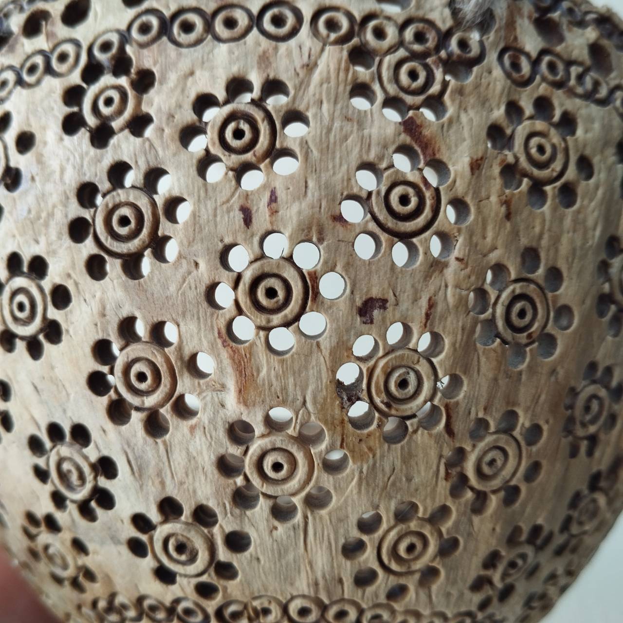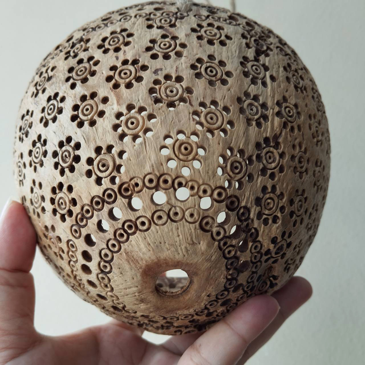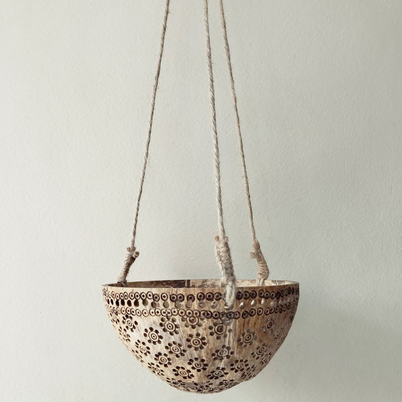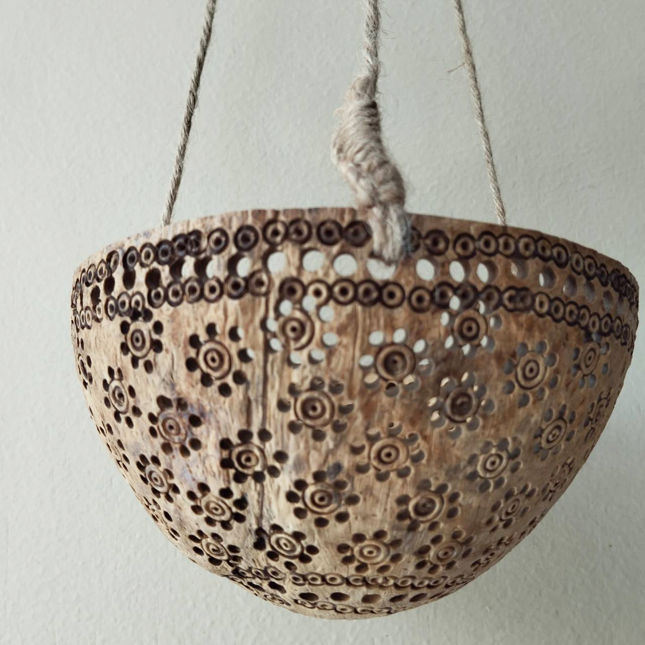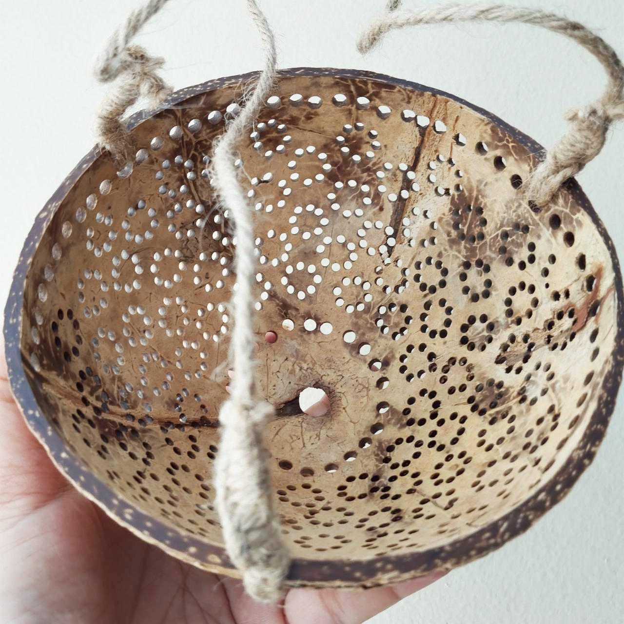 Material: Coconut shell and strings made of hemp rope.