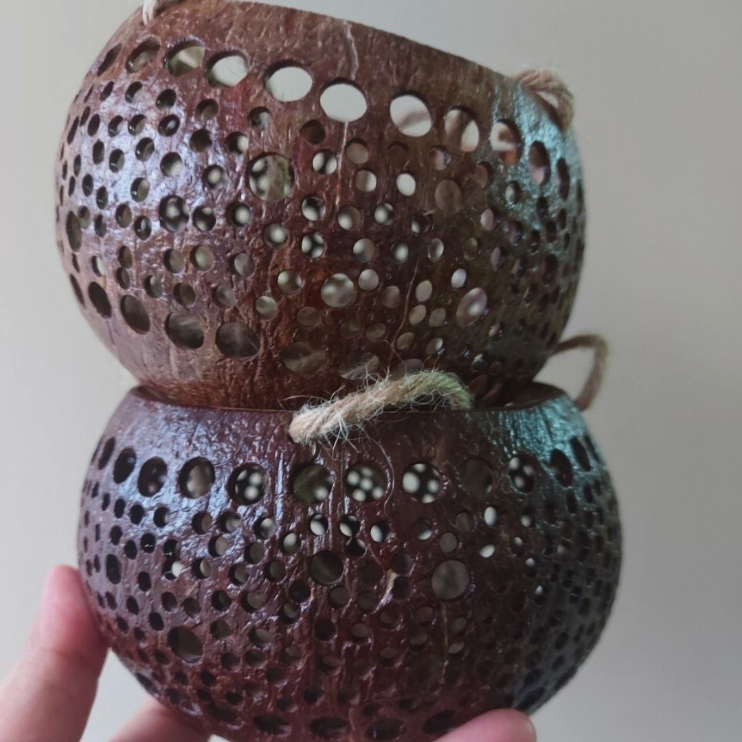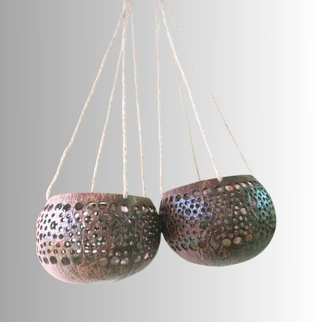 Add a fresh and creative touch to any space with our coconut hanging pots made from upcycled coconut shells, Great decoration your outdoor garden or even in Kitchen area, for flower, herb etc.