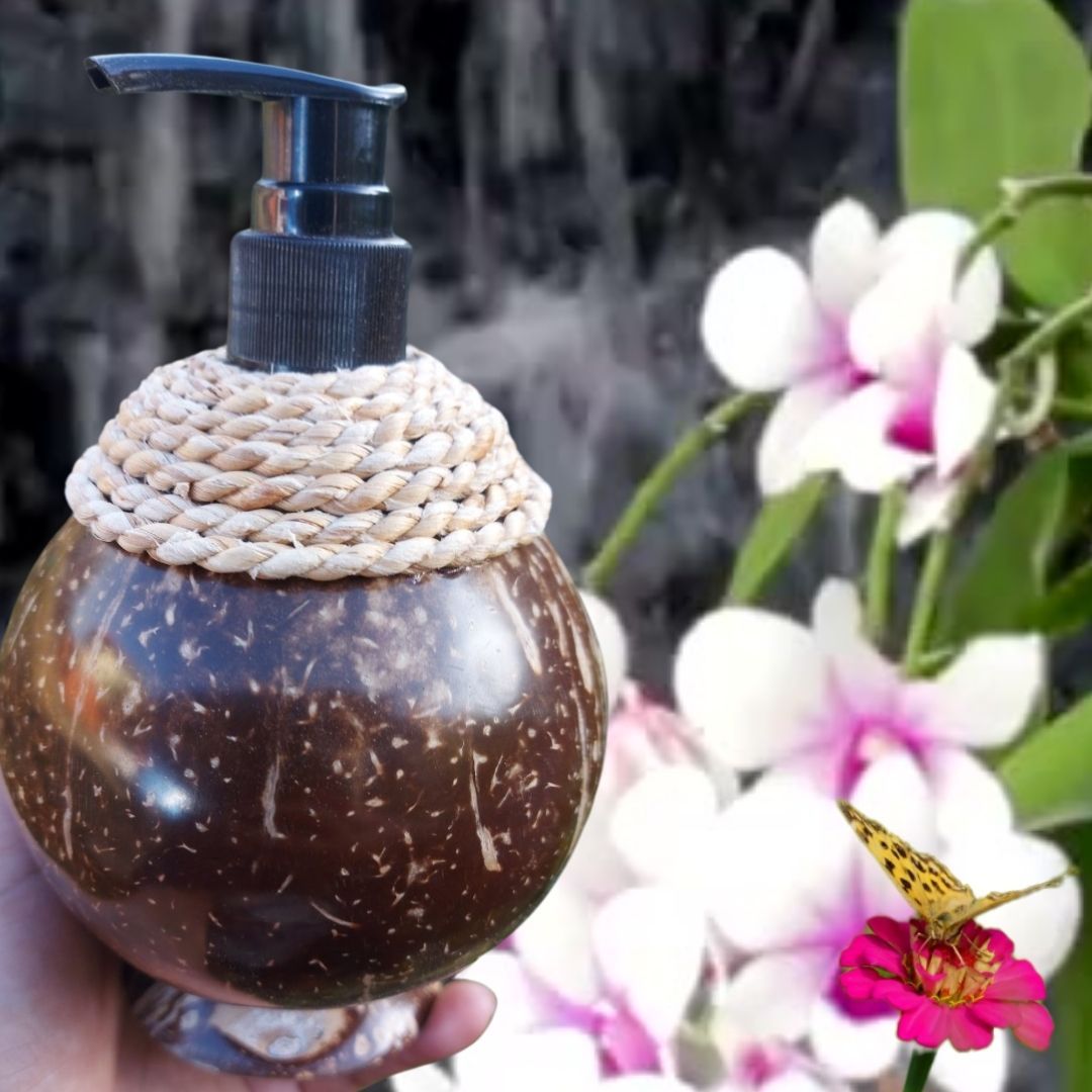 Coconut Shell Pump Bottle For for Your Home or Decorate Spa, Creative Vintage Natural Coconut Shell Shower Gel Hotel Sub-Bottle.