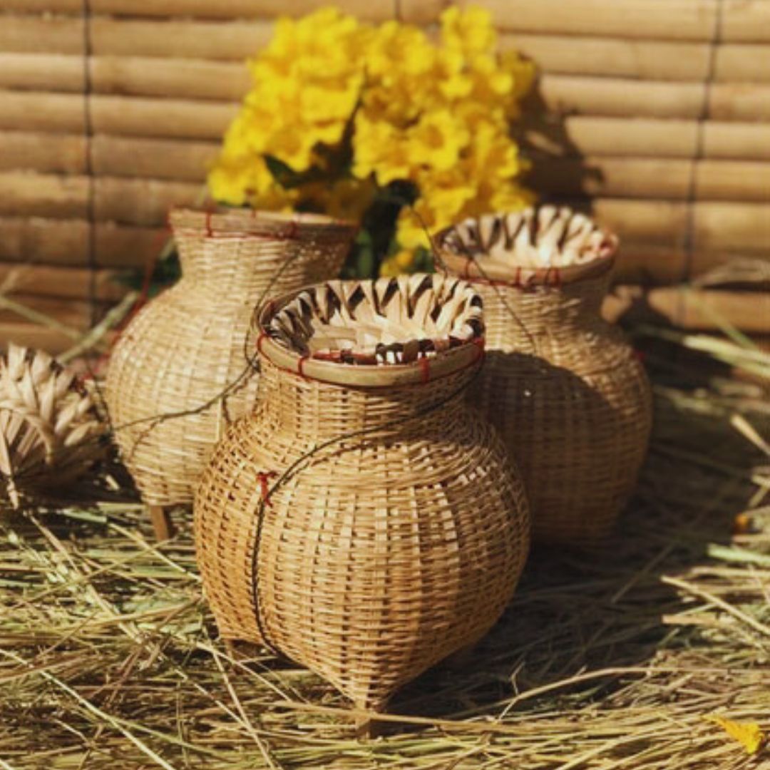 1 Pc Bamboo Basket Fishing Hand- Woven Wood Handwoven Easter Vase.