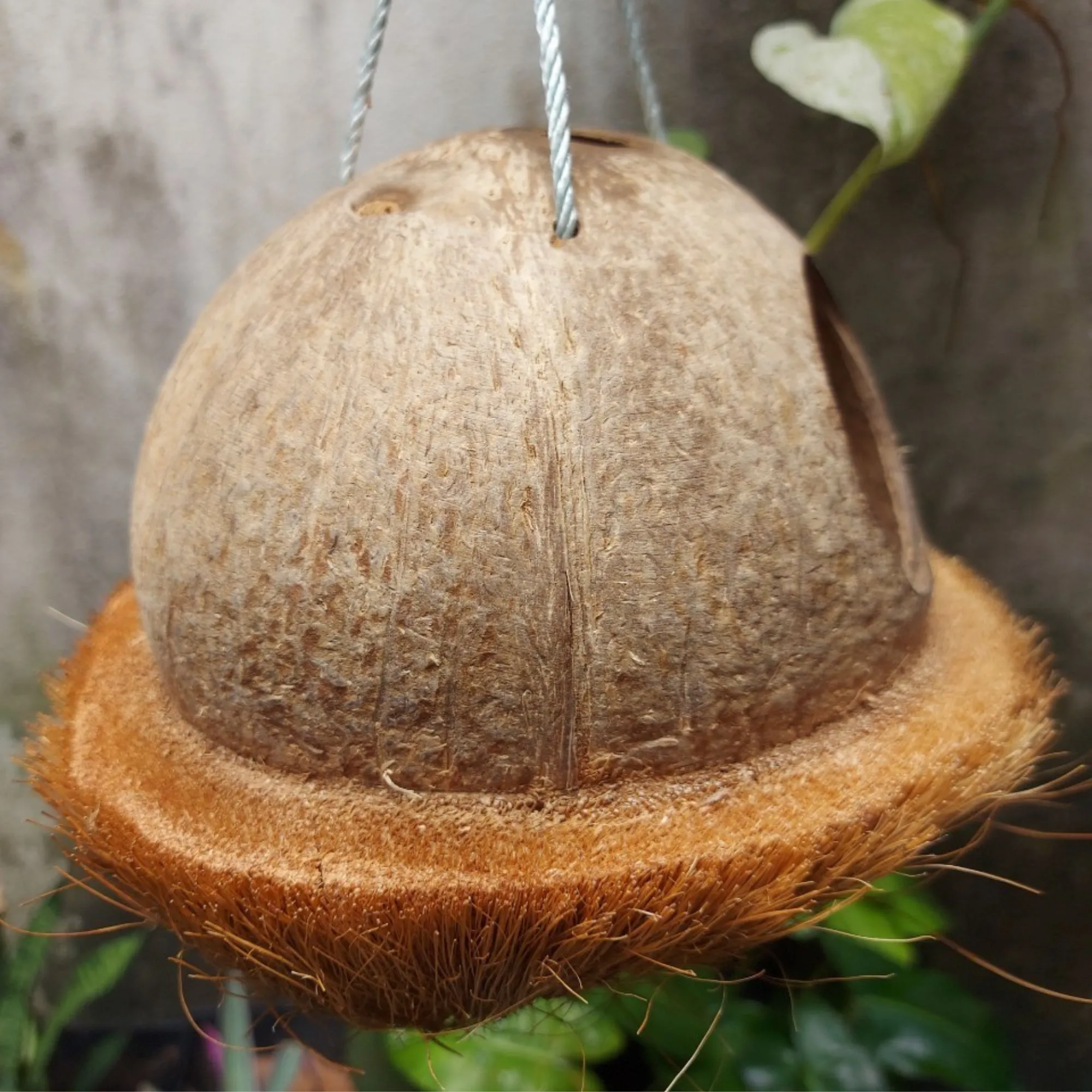 Bird house, Natural Coconut shell bird nest Handmade, bird houses for the outdoors handmade, bird cage, bird feeders for the outdoors.