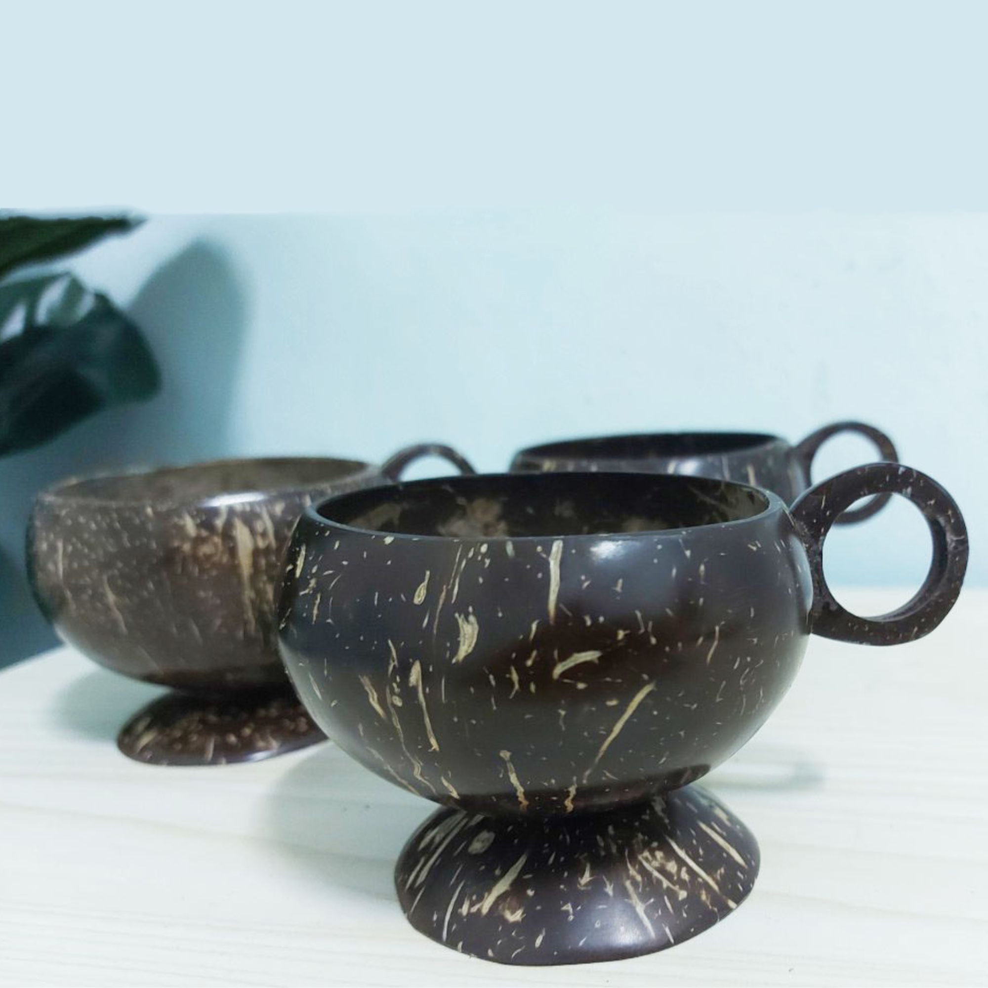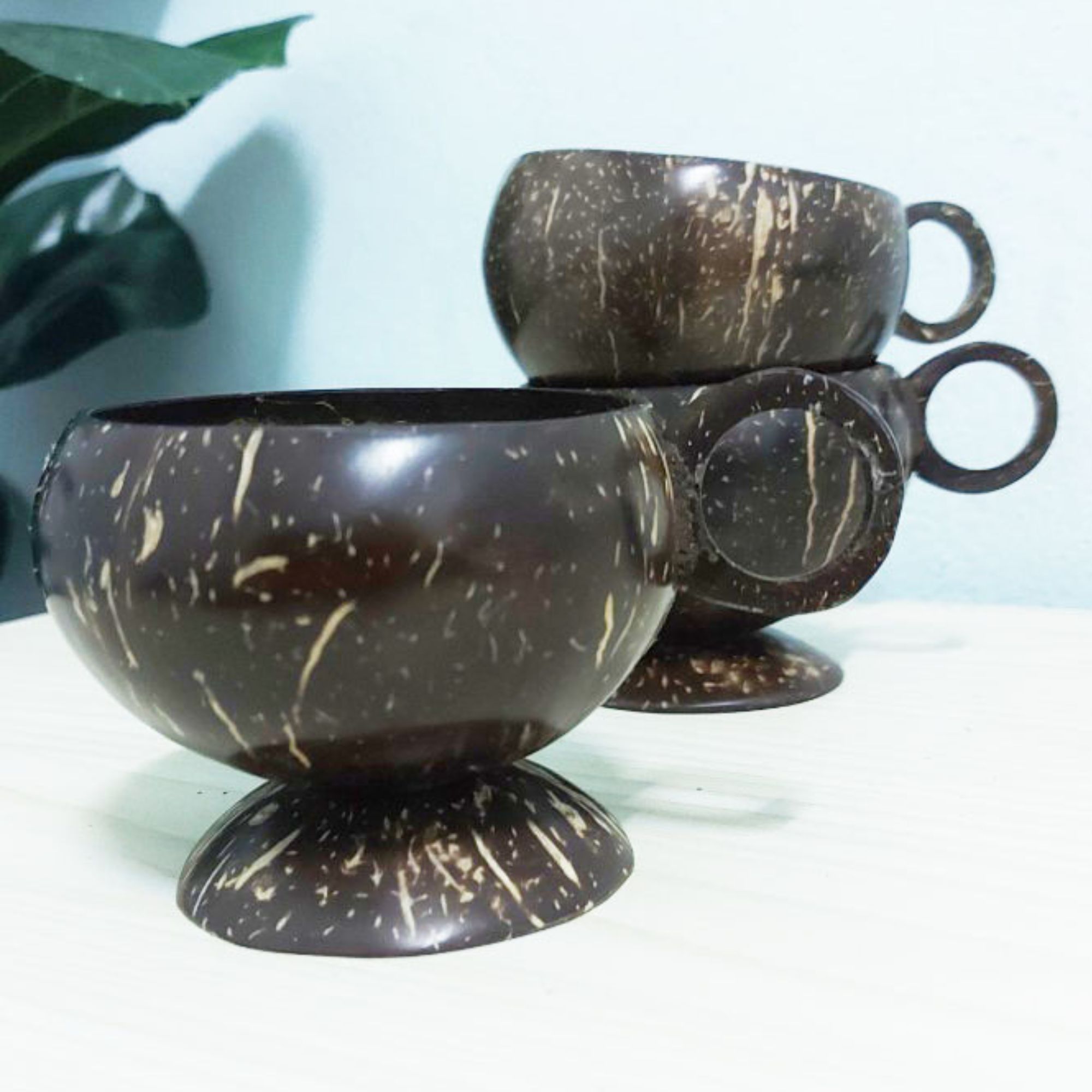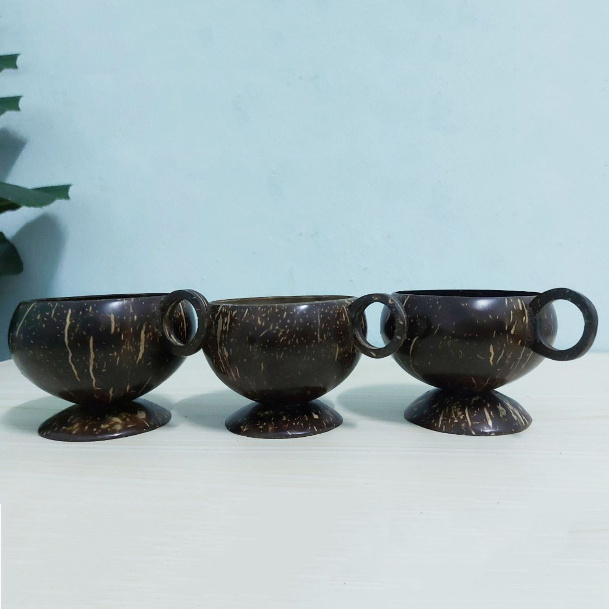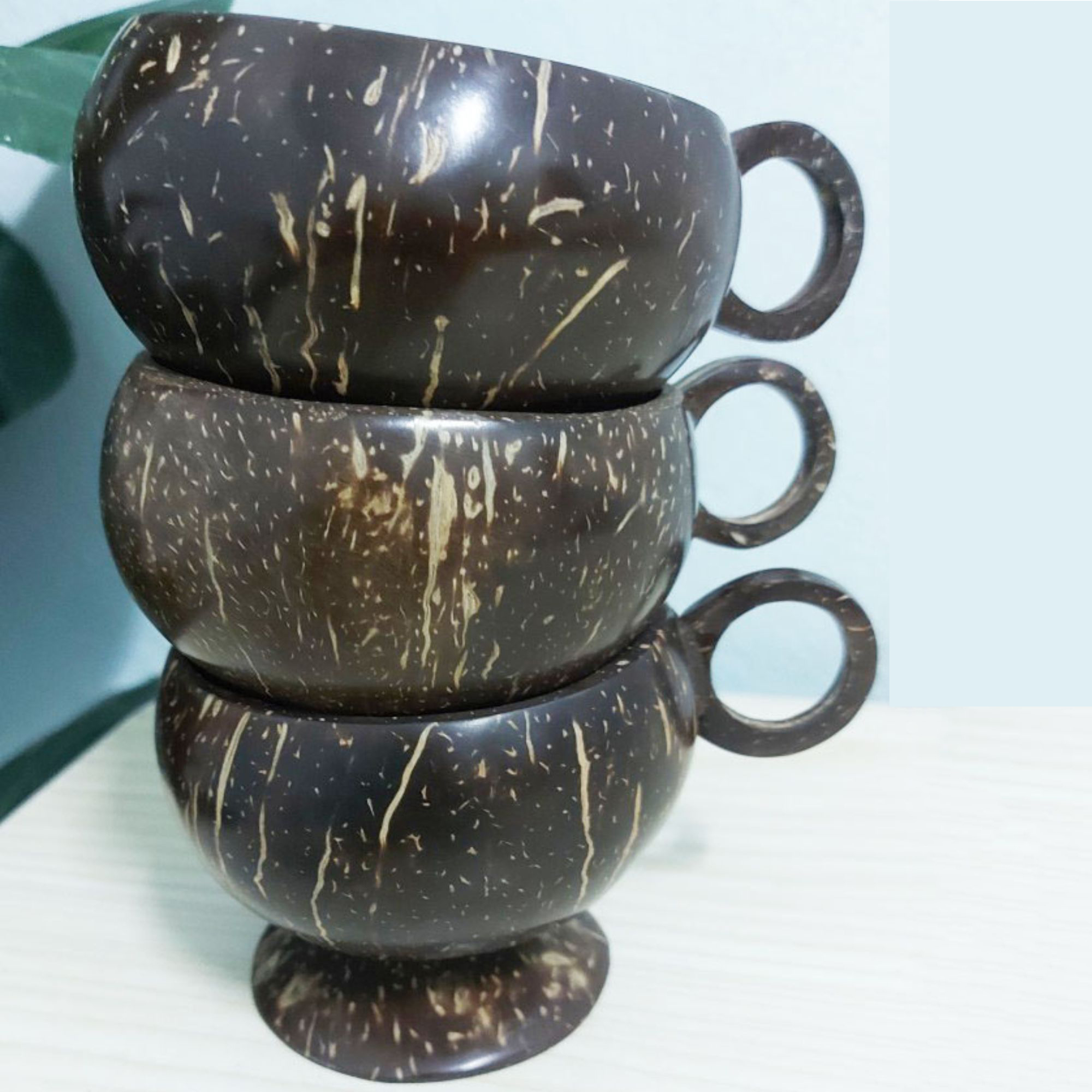 Set 3 PCS Real natural coconut shell coffee/tea cup wooden handle, handcraft rustic style, Eco friendly